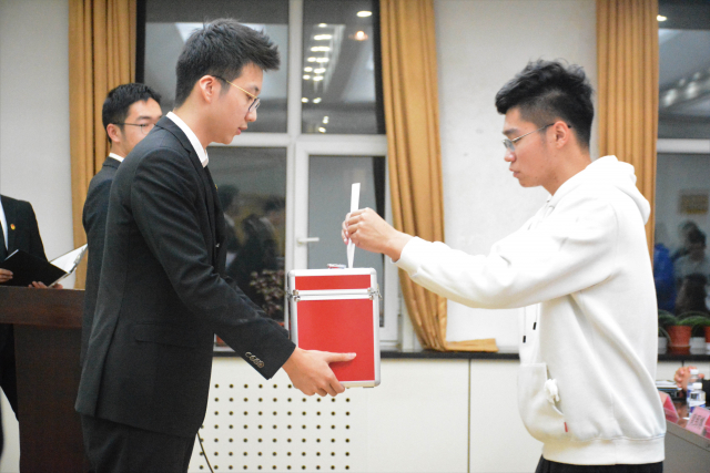 会议在庄严的国歌声中拉开了序幕。首先由第二十六届学生会主席团成员杨一耕、第十三届研究生会主席团成员陈蜀向大会做工作报告,总结了在过去一年中取得的成果和仍需改进提高之处,并对未来的工作提出了期望。随后由学生会主席团成员段启帆作提案工作报告,向各位学生代表汇报本次学代会、研代会的提案征集工作成果,指出了未来一年内机电学院学生会、研究生会的工作重心。接下来的大会竞选环节中,各位候选人充分展现了自己的综合素质,全方位阐述个人竞选优势,并说明了自己对学生会、研究生会的工作规划。竞选演讲结束后,参会代表对学生会、研究生会主席团进行了投票选举。