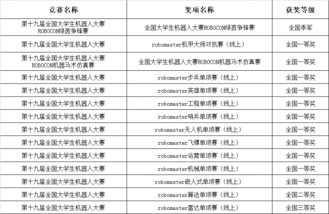 机器人队2020赛季获奖情况一览: