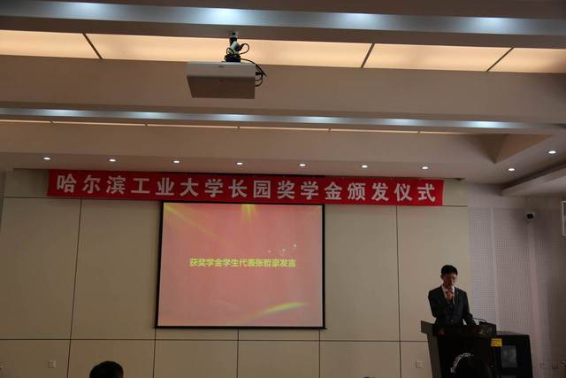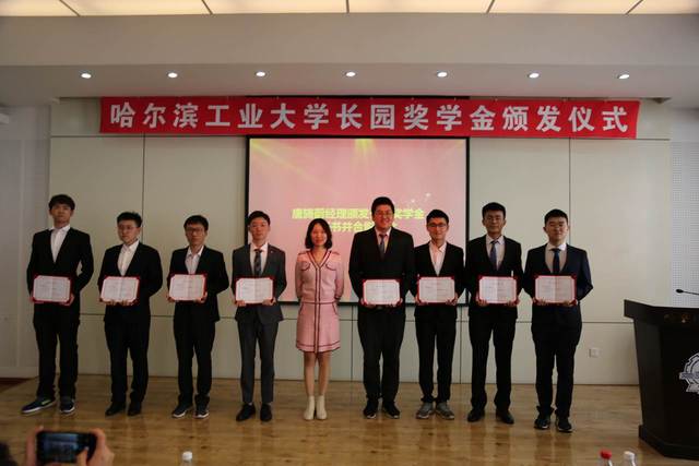 接下来,唐旖蔚经理为获奖学生颁发长园奖学金证书并合影留念,学生代表张哲豪发表获奖感言,他代表获奖同学感谢长园集团在哈工大设立的奖学金,并表示自己会将长园集团追求卓越,回馈社会的精神发扬下去,努力学习,秉持哈工大人严谨、踏实、努力的态度,始终践行“规格严格、功夫到家”的校训。