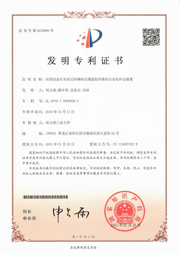 现对yl6809永利集团满卓奇同学在本人最高学历期间获得已授权发明专利证书进行公示。