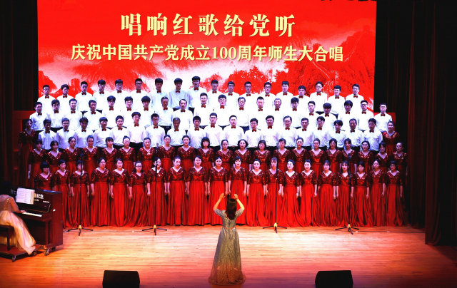现场合唱团则由100名师生组成,从5月底开始,合唱团成员充分利用休息时间练习《唱支山歌给党听》和《我们走在大路上》两支传承红色基因的歌曲,在曲调中感受百年岁月峥嵘,在歌词中追忆祖国光辉岁月。