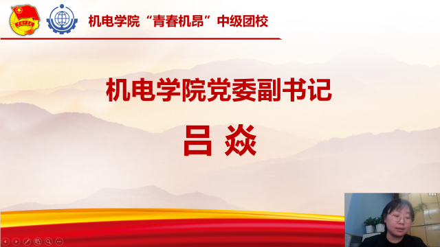 2021年11月12日晚,机电学院“青春机昂”中级团校开班式于哈工大APP会议平台成功举办。校团委书记王东升老师、机电学院党委副书记吕焱老师、机电学院团委书记孙宗斌老师及学院全体辅导员出席本次活动,开班式由机电学院团委组织部部长陈征主持。