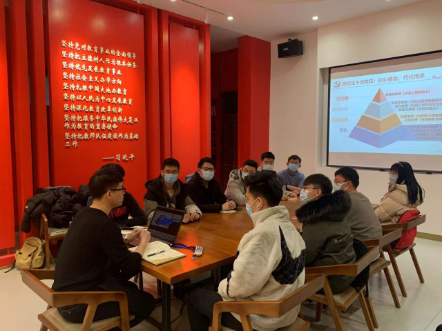 为深入学习贯彻落实习近平新时代中国特色社会主义思想,切实提升新任职学生党支部书记党务工作水平,引导学生党支部书记做政治上的“明白人”、党建工作的“责任人”和事业发展的“带头人”,2021年12月8日下午,机电学院新任职学生党支部书记培训第二期在机电学院党员之家“立德树人堂”成功开展,培训由机电学院学生党建负责人黄郅博老师主讲,全体2021级硕士生党支部书记参加。