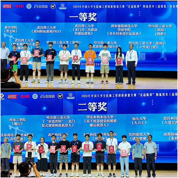 (张晓辉 文/图)8月24日,中国大学生机械工程创新创意大赛“北起院杯”物流技术(起重机)创意赛全国总决赛在大连理工大学圆满落下帷幕。经过激烈的角逐,我校的两支参赛队在100多支决赛队伍中脱颖而出,分获全国一等奖和全国二等奖。中国大学生机械工程创新创意大赛物流技术(起重机)创意赛是由中国机械工程学会主办的“中国大学生机械工程创新创意大赛”系列专业赛项之一,旨在通过竞赛增强大学生的科技创新意识,鼓励大学生积极投身科技创新与工程实践活动。本次竞赛的主题是:精准搬运机器人,参赛选手需设计、制作一台物料搬运机器人,通过自主有序的控制方式将物品从取物点按比赛规则搬运到置物平台,对结构创新设计及控制方案有较高要求。