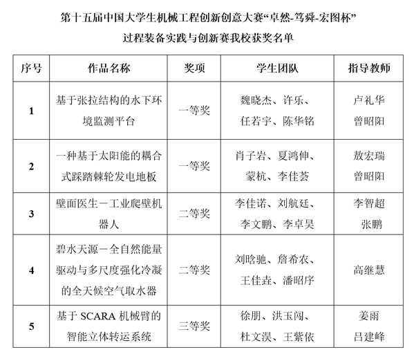 我校学子在第十五届中国大学生机械工程创新创意大赛“卓然-笃舜-宏图杯”过程装备实践与创新赛中喜获佳绩