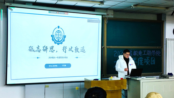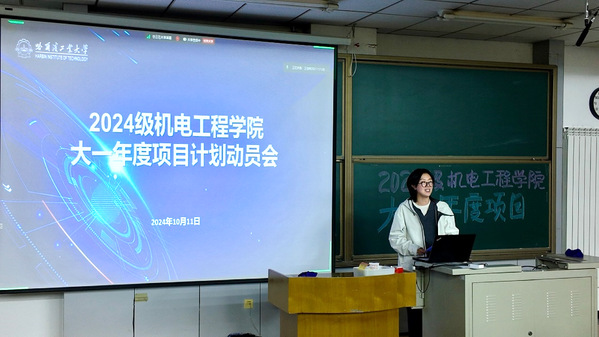 (文/苑佳宇 图/王佳炜)10月11日晚,面向2024级在校本科生的yl6809永利集团大一年度项目动员会在二校区主楼B12召开。第十、十一届全国大学生机械创新设计大赛黑龙江赛区组委会主任丁刚教授、优秀学生代表刘笑麟、李佳诺和王佳炜同学参加了本次会议,yl6809永利集团工程创新实践中心苑佳宇老师主持会议。