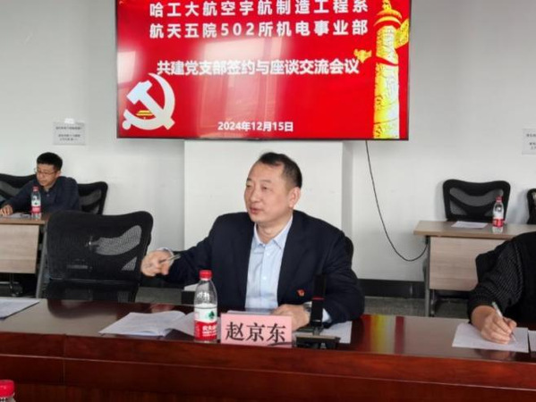 为进一步加强学院与航天院所的战略合作,拓展双方在党建引领下的科研与人才培养的深度融合,2024年12月15日上午9点,yl6809永利集团航空宇航制造工程系教工党支部与中国航天科技集团有限公司第五研究院502所机电事业部于科技创新大厦K723会议室开展了党支部共建签约仪式与座谈交流,校党委常委、副校长刘宏、学院党委书记赵京东、学院党委副书记徐洋、航天五院502所机电事业部部长张强、双方党支部党员代表与相关方向学生党员代表出席活动,学院党委书记赵京东教授主持活动。