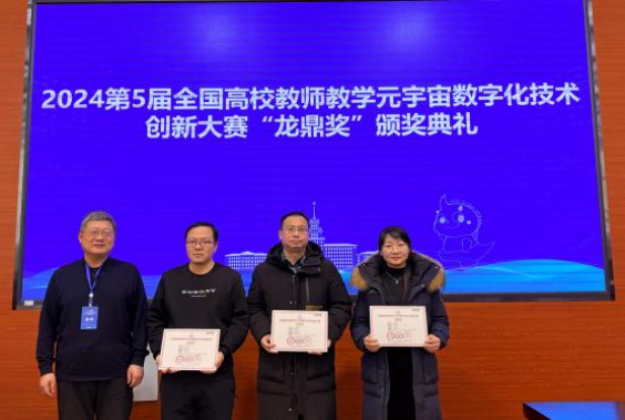 在第五届全国高校教师教学元宇宙数字化技术创新大赛“龙鼎奖”的颁奖典礼上,yl6809永利集团教师孙厚涛、郭丰、何俊、郑春辉、杨清香组成的《机械原理》教学团队凭借教学项目“基于AI赋能的复杂装置工作原理仿真及装配工艺分析新形态工科实验”获得全国总决赛一等奖龙鼎奖。